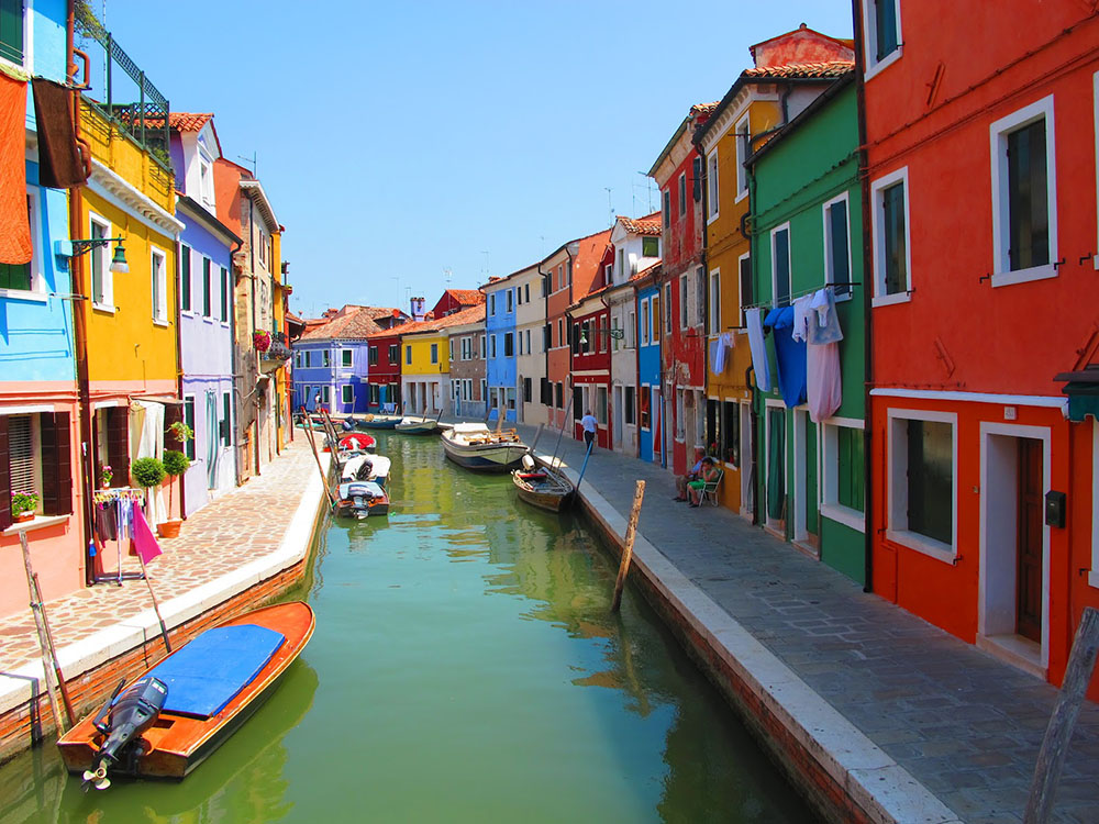 Venise et les îles de sa lagune représentent un cadre unique : somptueux palais vénitiens donnant sur le Grand canal ou petites ruelles où flâner et s’égarer, la place Saint-Marc et sa basilique, le palais des Doges et le pont des Soupirs… Les masques, les gondoles, les pigeons ; l’artisanat local sur les îles de Murano et Burano (verre et dentelle)…